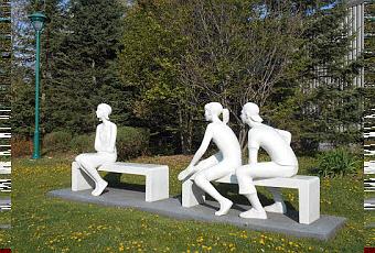 Moins transcendant que le lapin à lunettes géant, ces trois écoliers confinés à un petit parc du centre-ville pour l'éternité me semblent une belle métaphore inversée du slogan du congrès (vers l'infini).