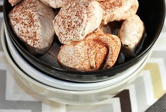 6. Saupoudrer les meringues d’un peu de poudre de cacao.