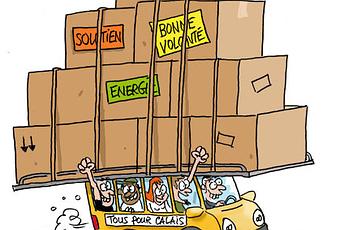 Le collectif "Tous pour Calais" d'Aix m'a demandé un petit dessin pour illustrer leur projet d'aller en mini bus, apporter de la nourriture, des vêtements et des tentes aux migrants de Calais. Finalement, la nourriture qu'ils espéraient récolter auprès des supermarchés leur a été refusé, car leur projet est hors département... Le projet est maintenu néanmoins avec dans les cartons, de la bonne volonté, de l'énergie et du soutien... Bravo à eux et bonne route