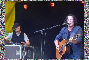 16:04', Arno armé d'une acoustique et Alexander bidouillant un sampler et tapotant un clavier, en piste.