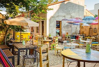 Acuarela, c'est un bistrot incroyable à Bucarest dont je vous ai parlé il y a quelques temps. On avait visité l'intérieur, aujourd'hui je vous emmène dans son beau jardin, avec des parapluies colorés, un espace cosy et du mobilier de récup haut en couleur ! Acuarela , c'est le lieu qui accueille la communauté créative de Bucarest. Ici chacun peut partager sa passion pour l'art et la joie de vivre. Dans un hamac, sur une chaise colorée, sur un pouf où sous un parapluie, dans un décor digne d'une comédie musicale, on peut participer à toutes sortes de manifestations culturelles : jam, concerts de jazz, pièces de théâtre, des spectacles d'art... Bref un lieu où il à l'air de faire bon flâner !