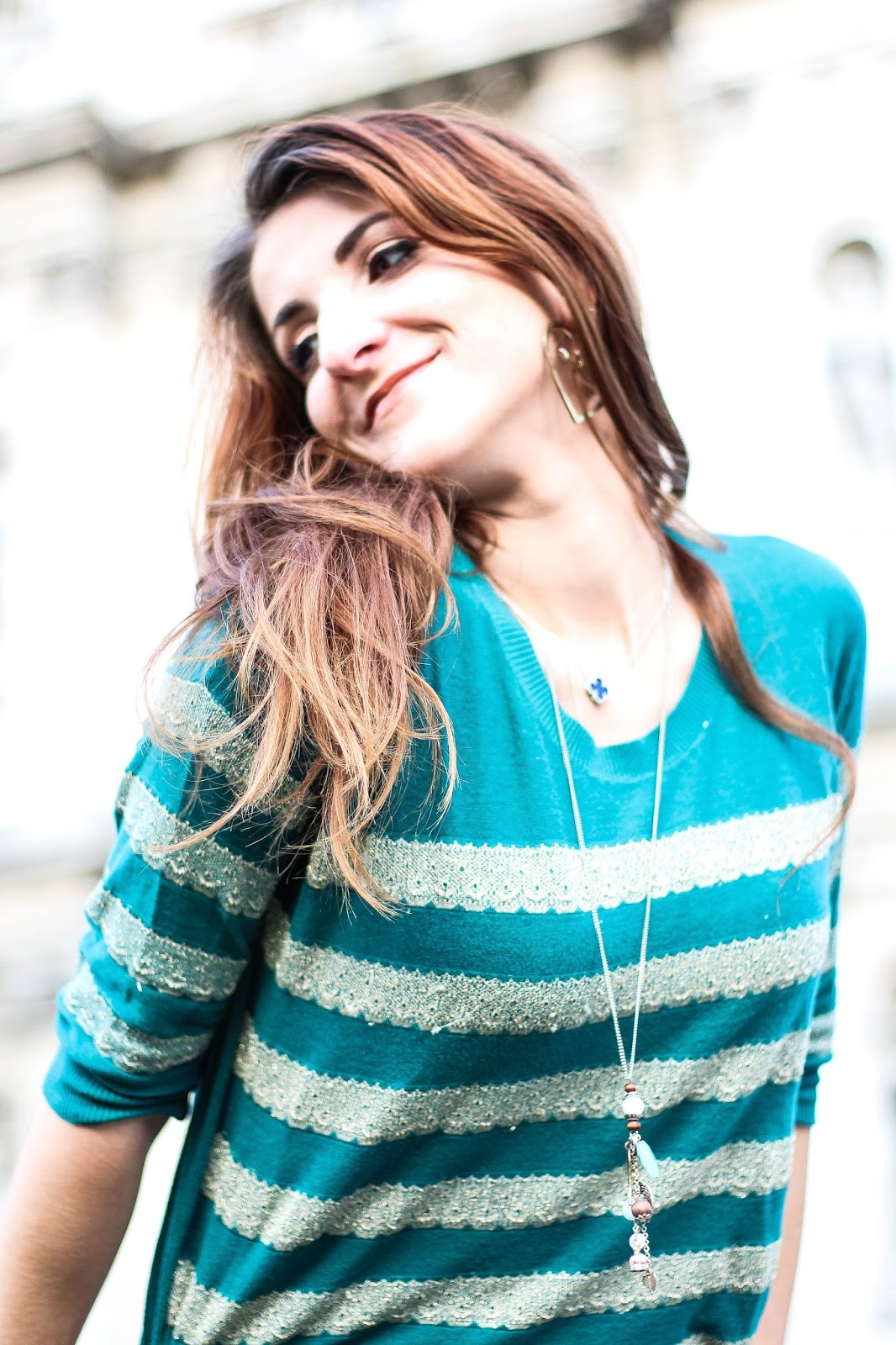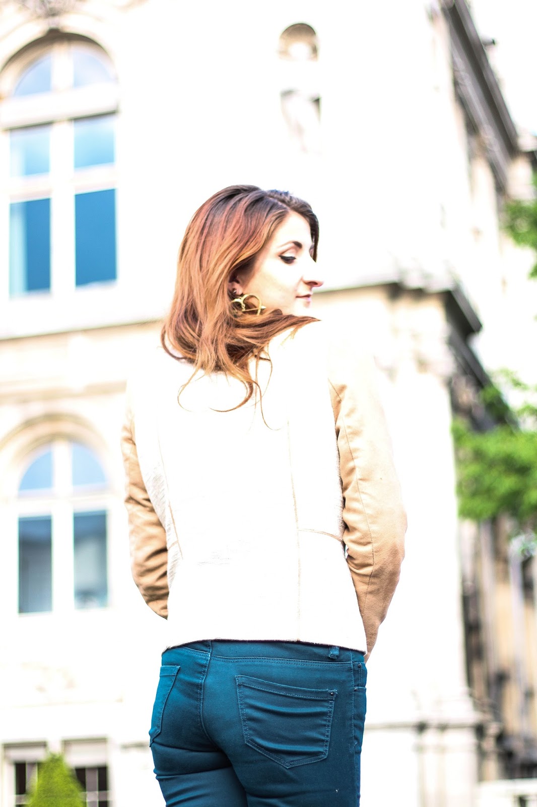 Pour cela, j'ai un top émeraude à rayures dorées de chez Promod, un jean bleu canard de chez New Look, une veste camel en daim de chez Jaqueline Riu - #jesuisunemamie - des chaussures en daim camel de chez H&M, mon Speedy 30 de Vuitton , un sautoir bois et pierre de chez Pimkie, un bracelet esprit Indien de chez Harpo, ma montre connectée et mon élastique sans démarcation Primark.