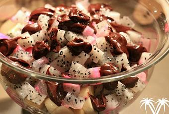 2 pitaya 3 bananes 80gr de chocolat noir un peu de crème fraîche épaisse un peu de lait