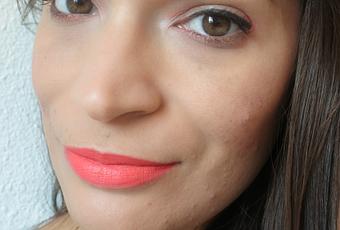 Vu que je suis une éternelle insatisfaite, et que je trouve que le côté « néon » n’est pas flagrant, je prend un encre à lèvres orange que j’adore d’ailleurs ( parce faut que je me la pète un peu, le rouge orangé me va bien, parole de vendeuse de chez MAC), pour dynamiser tout ça.