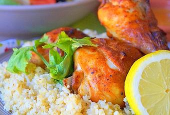 Servir le poulet tandoori avec un riz parfumé, du boulgour ou autre féculent .