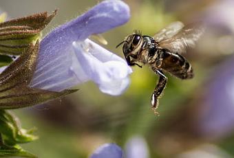 Comme pour l'article sur les abeilles et le Romarin, voici venu l'époque de la Sauge qui est en fleur. C'est assez proche de la fleur de Romarin, avec pour l'abeille, la même recherche du nectar au fond de la fleur qui en profite pour déposer son pollen...
