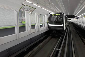 A l’occasion du prolongement de la ligne 14 jusqu’à Mairie de St-Ouen en 2019, le matériel sera renouvelé sur l’ensemble de la ligne. Le groupe Alstom vient de dévoiler le design et l’aménagement intérieur des futures rames du métro sur pneus MP14, destinées à circuler en Ile-de-France à partir de 2019. Alstom a remporté en 2015 un contrat cadre portant sur la livraison d’un maximum de 217 trains MP14 sur 15 ans et pour un montant total de plus de 2 milliards d’euros auprès de la RATP, mandatée par le STIF et la SGP pour les trains de la ligne 14.