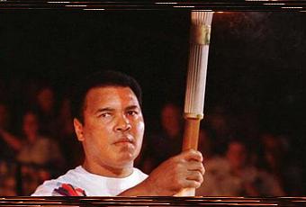 L'Amérique, en mal de symboles et oublieuse des flèches qu'elle lui avait plantées aux heures sombres du Vietnam, l'installe sur un piédestal aux Jeux Olympiques d'Atlanta en lui faisant allumer la flamme. Le geste du champion secoué par le tremblement, mais debout et digne, soulève une émotion sans égal. Plus fervent que jamais, Ali lutte pour la cause religieuse, l'enfance déshéritée, la recherche médicale. Sans aucune plainte à l'égard de sa souffrance qu'il affecte de réduire au prix de ses fautes.
