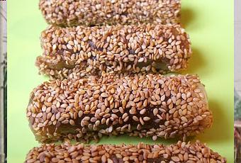 Mes placards sont remplis de graines de sésame (bon, d'accord ptêt pas remplis mais j'en ai quand même 1 kg...) et j'avais envie de les utiliser pour faire un dessert. Mais j'ai eu beau chercher, je n'ai rien trouvé qui me convenait (à part la nougatine au sésame, on ne trouve vraiment pas beaucoup de recettes sucrées avec ces ptites graines).Qu'àcelanetienne! Je me lance dans une ptite impro avec plein de sésame dedans (et dehors aussi!): les cigares au sésame.