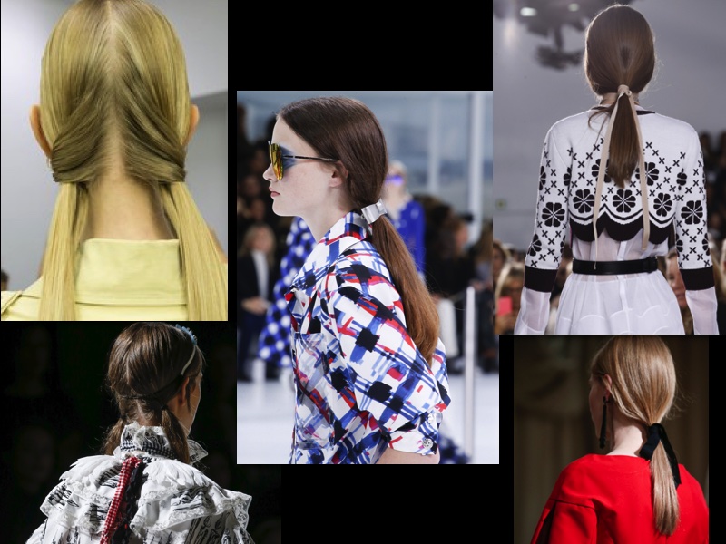 Attache-Moi: Les créateurs nous proposent des attaches basses et sages en version queue de cheval ou couettes régressives. Et si on ajoute un joli ruban, c'est encore mieux!Marni, Miu Miu, Chanel, Christian Dior, Oscar de la Renta