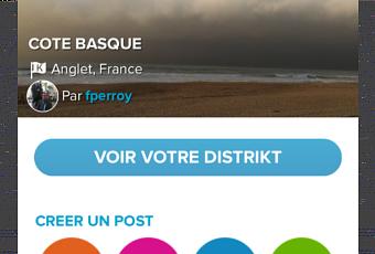 L'ergonomie et le design ne sont pas des plus avenantes sans être rebutantes pour autant. On se crée un compte et on plante un drapeau sur la destination que l'on estime bien connaître. On dessine son royaume autour et à partir de là on crée fort classiquement son propre DistriKt. On peut alors publier autant qu'on le souhaite, du texte, des photos, des vidéos à travers des posts et organiser le tout en album. Par sécurité les concepteurs autorisent jusqu'à la création de 3 Distrikts. Il n'est pas dit qu'ils peuvent être fort éloignés, ce qui est envisageable par exemple entre son lieu de vie, son lieu de travail et son lieu de vacances privilégié. Peu importe le zonage, c'est le local qui définit son territoire et ce qu'il a envie de partager : lieux, ambiances, activités, restaurants... Cette vision des habitants est " désintéressée " indique Benjamin Bardes, l'un des 10 DistriKtiens avec qui je me suis entretenu. L'entreprise est née sous l'impulsion de Français installés à Miami et compte une représentation technique en Bretagne et l'autre, partenariale à Paris. Les blogueurs sont appelés " reporters " au fil de la conversation. En fonction de leur type et volume de production, ces reporters locaux reçoivent des cadeaux de la part de MydistriKt et certains, parmi les plus stimulés obtiennent une carte américaine de reporters " une vraie carte de presse " qui apparemment leur ouvre des portes. 150 d'entre eux sont ainsi devenus des reporters de destination. Exemple d'un DistriKt créée par une locale à Arcachon.