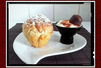 Dégasez la pâte, remplissez les moules à brioche de pâte à moitié déposez une bonne cuillère de ganache puis recouvrez avec un peu de pâte.