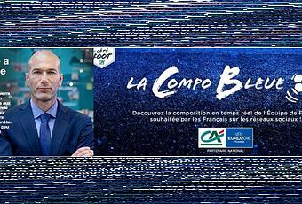 " La Compo Bleue " est la première plateforme qui permet de connaître en temps réel la composition " idéale " de l'Équipe de France, d'après les Français. Elle a été développée en partenariat avec Digimind qui analyse les conversations sur les médias sociaux.