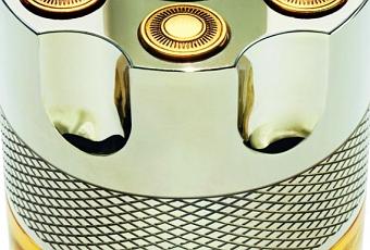 dessinés telles des balles précieuses d'armes à feu. D'ailleurs, cette forme se répète également au sommet de cette sculpture, s'ornant pour l'occasion d'une gravure au nom d'Azzaro. L'ensemble est de toute beauté et joue alors clairement sur les contrastes. Le métal argenté est opposé à des teintes dorées. L'opacité du bouchon fait face à la transparence du verre. De même, des parties lisses sont juxtaposées à des surfaces ciselées. Pourtant, l'ensemble affiche une parfaite harmonie et semble idéalement pensé pour assurer une parfaite prise en main. Une nouvelle fois, la maison Azzaro semble alors avoir signé un produit d'exception promettant d'attiser bien des convoitises...