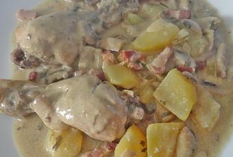 Poulet aux champignons et pommes de terre - sauce crémeuse à la moutarde