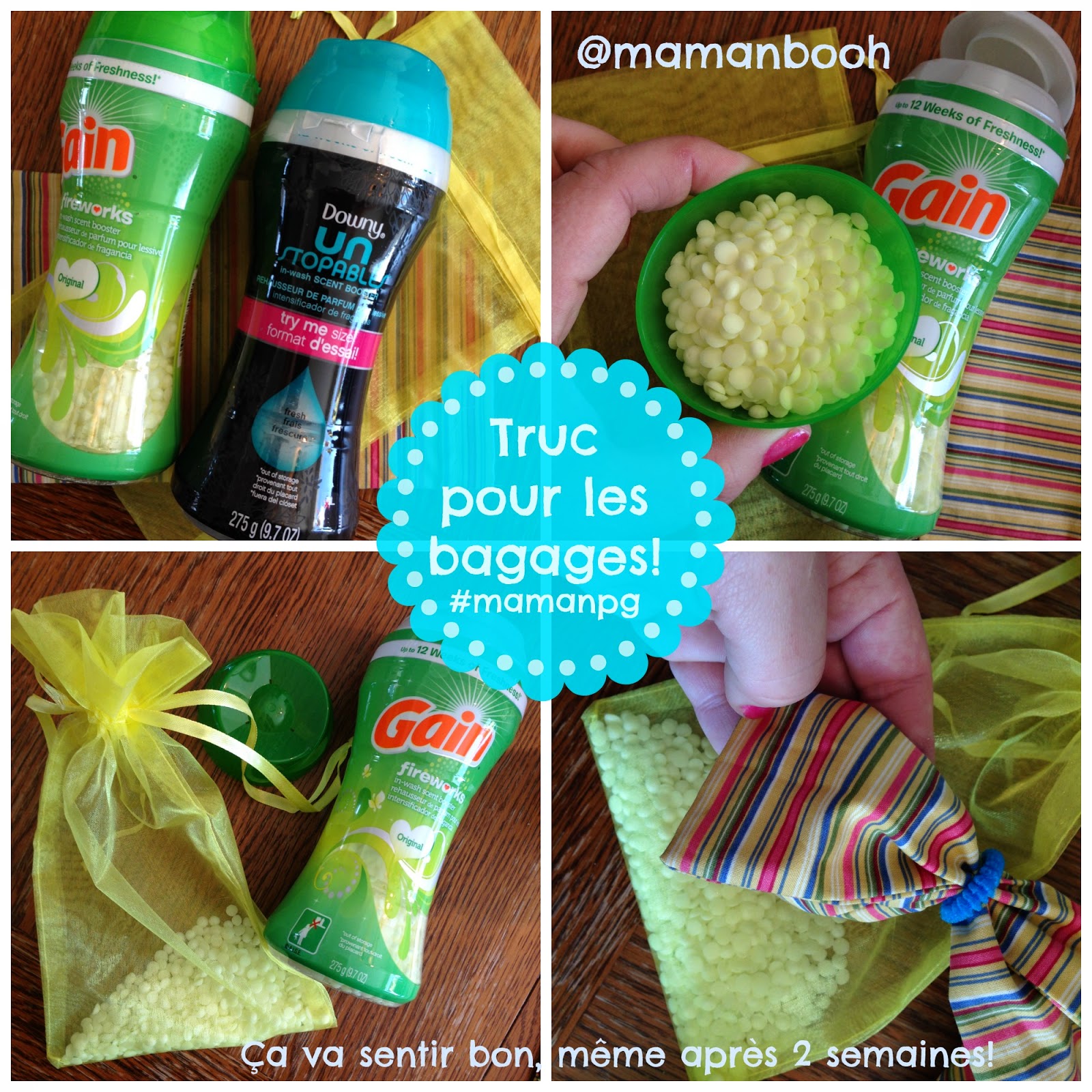 - Downy Unstoppables (1 lavage): on fait des pochettes qui sentent bon qu'on place dans les sacs de sport, dans les tiroirs ou sous un siège dans la voiture.