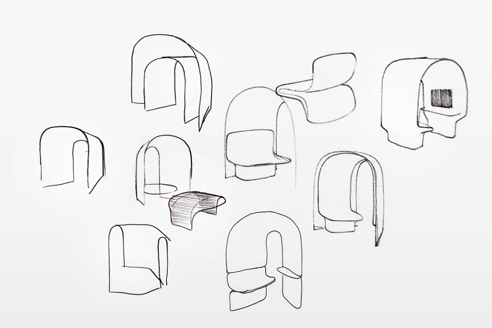 « Micro-architecture, le meuble isole le visiteur du parcours général et du bruit ambiant. Le banc permet d’accueillir jusqu’à 3 personnes. La forme ouverte de l’objet laisse la vue libre au visiteurs de passage ainsi qu’aux publics en fauteuils roulants. Sa double peau apporte confort et intimité à l’intérieur tout en s’intégrant à l’architecture du lieu. Le hêtre utilisé pour la coque du Fauteuil Sonore fait écho aux bardages du balcon voisin. Une trappe latérale permet d’accéder facilement à l’ordinateur et aux équipements qui pilotent l’écran tactile et les enceintes. Le Fauteuil Sonore offre une pause dans le parcours muséographique. Sa forme voûtée et accueillante crée un abri sous lequel il est bon de se laisser raconter des histoires.«