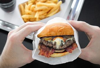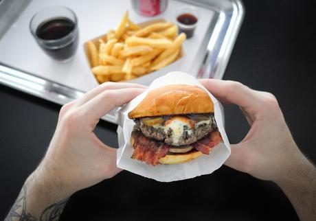 Burger BBQ b&m (bacon, bleu d'Auvergne, sauce BBQ, champignons, pickle, oignons caramélisés) I ©Annabelle SCHACHMES