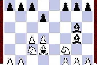 1.e4 e5 2.Cf3 Cf6 3.Cxe5 d6 4.Cf3 Cxe4 5.c4 Fe7 6.d4 0–0 7.Fd3 Cg5 8.Cc3 Fg4 9.Fxg5 Fxg5