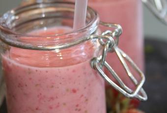 Pour le dessert des enfants , après un repas type "McDo"...avec des hamburgers et frites maison...et je leur ai fait un milk-shake avec les premières fraises du jardin relevé par un trait de sirop de framboise de ma dégustabox de mai...succès assuré auprès de mes petits gastronomes !!!!
