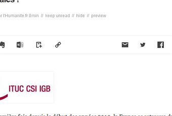 Il est de plus en plus courant de lire ici et là par des bien-pensants libéraux que l’image de notre pays serait entachée par les exactions commises en marge des manifestations. Plus que par les actes de violence des hooligans, vraiment ? Et de vitupérer contre la violence de la CGT, désignée unanimement par les libéraux du PS comme de LR comme l’ennemi à abattre. Courte vue bien orientée et propagande ridicule que voilà. Car pour qui s’intéresse à la manière dont l’information est traitée, et pas seulement du seul point de vue hexagonal, il apparait nettement que les atteintes de plus en plus flagrantes et nombreuses aux droits humains sont une réalité bien davantage pointée à l’international, dont ne semble guère se préoccuper notre gouvernement, pourtant abusivement classé à gauche par des médias bien paresseux …. Aussi, apprendre que la Confédération Syndicale Internationale vient de pointer le mauvais rôle de la France en matière de violations des libertés syndicales s’inscrit dans la continuité de mon analyse sur la situation des droits humains et des libertés dans notre pays. Il n’y a donc pas seulement, n’en déplaise à ce gouvernement réactionnaire, de méprisables gauchistes qui constatent l’inquiétant phénomène de criminalisation de ‘action syndicale… CQFD.