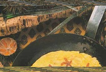 Détachez soigneusement le corail des oursins après avoir ouvert (ou fait ouvrir) ceux-ci. Ajoutez-les dans la jatte avec les oeufs battus et mélangez.