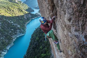 Chris Sharma et Klemen Becan défrichent un nouveau projet de plusieurs longueurs au Mont Rebei (Catalogne, Espagne), un lieu magnifique. Après une première longueur en 6c grimpée par Klemen avec son chien dans le sac à dos, la deuxième longueur estimée à 9a leur donne du fil à retordre. Cette longueur de 40 mètres commence par une première partie technique en 8b+, puis le compteur monte dans les tours avec un dévers intense où le crux sur une verticale main droite leur pose de gros problèmes.