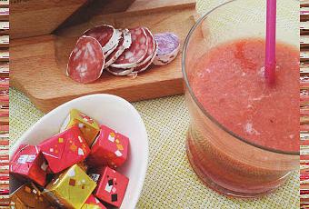 Qui dit Euro & match de foot, dit aussi apéro! J'avoue ce que je préfère dans tout ça, ce sont les apéros et l'ambiance, car moi le foot je m'en passerai bien! Et comme je ne bois pas d'alcool (un verre de cidre et je suis déjà pompette...) je jongle avec les jus de fruits, les sodas ou les apéritifs sans alcool. Pour changer un peu, je me suis préparée un petit jus frais et original. J'avais beaucoup aimé le trio melon/pêche/menthe du fantastik de Michalak alors je suis partie sur la même idée mais avec de la pastèque et de la nectarine à la place du melon et de la pêche.