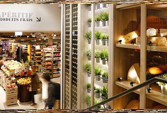 Carrefour a inauguré en juin un nouveau concept de magasin de centre-ville, clairement positionné haut de gamme pour contrer Monoprix sur la cible des urbains aisés. Baptisé « Gourmet » en interne, il a déjà été testé en Italie, semble-t-il avec succès, puisqu’il débarque aujourd’hui à Paris dans le 13e arrondissement. Côté produits, la part belle a été réservée aux produits frais : fruits et légumes présentés dans de grands paniers en osier et des cageots en bois, fromages préemballés posés dans des étagères, gros jambons exposés dans des armoires en verre… On trouve aussi une cave à vins fournie avec des conseils de dégustation, un rayon de produits régionaux et des petites cages à poule pour décorer le rayon oeufs. Seul le rayon boulangerie semble un peu faiblard. Mais c’est surtout l’ambiance du magasin qui a été particulièrement soignée : carrelage aux murs, éclairage tamisé 100% LED, piliers en briques, comptoirs et plafonniers en bois… Une ambiance qui fleure bon l’authentique, en tous cas très agréable. A l’extérieur aussi la présentation a été travaillée : les caisses ne sont pas visibles depuis la rue et les produits frais sont mis en avant dans les vitrines. Dernière touche « locale » : le magasin porte le nom de son quartier « Market Saint Marcel ».