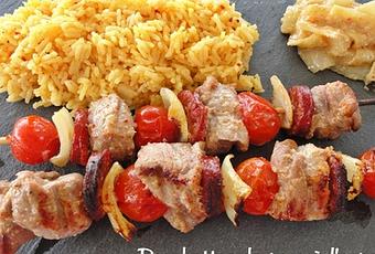 Perso, 1 brochette = tomate/oignon/chorizo/porc, tomate/oignon/chorizo/porc, tomate/oignon/chorizo/porc
