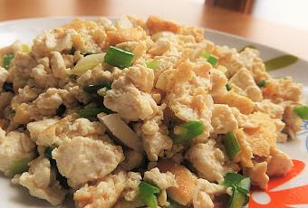 原料:豆腐、葱、蒜、盐、黄酒 1、豆腐从中间切成两块,用干布吸干表面水份,葱切成一厘米的段儿,蒜切三亳米厚片。2、温油时豆腐下锅(别急於翻动)待呈焦黄色翻到另一面,直至豆腐所有面至焦黄色3、把葱、蒜放入锅中略煸炒,然后马上把豆腐用锅铲锄碎,继续和葱蒜煸炒大概半分钟,再加少量开水小火煮半分钟,然后加盐、黄酒出锅即可。(炒时少加些糖也可以提鲜,但不能有甜的感觉。 Imprimer la recette