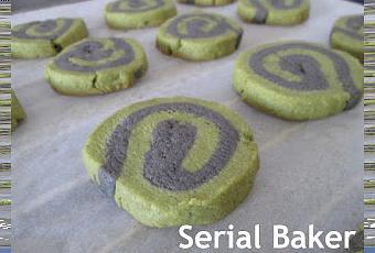 Superposer les deux rectangles de pâte et appuyer légèrement pour les faire adhérer.Rouler la pâte en un boudin, en maintenant le boudin bien serré. Découper ensuite des tranches. Normalement, vous obtenez un bel effet "escargot".