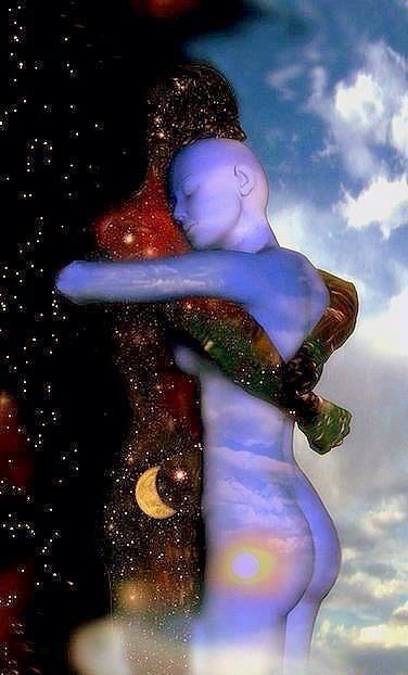 L'amour est le lien en l'universel et le singulier, entre la personne et ce qui la dépasse.La personne n'est pas un assemblage d'informations qui "fonctionne" selon des lois déterminées, une sorte d'automate spirituel. Ou plutôt, une telle machine, si elle existe, est la sève de l'Acte, cristallisée par l'oubli, devenue habitude, tombée dans l'inertie. Mais la Vie demeure, sans quoi même ce simulacre de personne qu'est le Vieil Homme, ne saurait subsister. Point d'illusion sans un Souffle réel.Cependant, l'important n'est pas là. L'important est le lien, l'amour. L'amour est relation, mais relation créatrice des termes reliés. Je n'existe pas avant d'aimer. Je n'existe pas avant d'être aimé. Le sujet et l'objet, ou comme on voudra les prendre, n'existent pas avant l'amour qui les embrasse et en qui ils s'embrassent. Point de dualité sans un troisième terme. Ce troisième n'est pas vraiment un troisième. Il est la vie des termes reliés, il est tout leur être. Il est, plus que le ciment, la matière des choses. Et ainsi, il n'y a pas de séparation sans unité, pas d'unité sans séparation.Telle est "l'ultime non-dualité", parama-advaita, du Dieu et de la Déesse.Dieu - l'amour - dit, à travers le poète :"Ma bien-aimée est l'agrégé de l'Univers, et l'Univers est prolongement de ma bien-aimée".(Novalis)Et cette parole est tout, et elle continue en tout, en chaque cri d'amour, jusque dans le dernier désir du dernier des êtres.J'ai souvent entendu dire que la trinité ignorait le féminin. Inutile de nier que le christianisme de Paul de Tarse n'est pas celui d'un amant de la Déesse... Mais le Souffle sacré, traduit par "Saint Esprit", n'est-il pas l'amour ? Or, l'amour n'est-il pas féminin, à l'origine ? De même, dans l'amour courtois, il y a l'amour, incarné par la Dame, la jeunesse, incarnée par son amoureux, et la joie qui les relie. Quelque soient le mode, on retrouve cette trinité, on retrouve l'amour, et on retrouve le féminin.La conscience est amour.La conscience ne se contente pas d'être.Ou alors, il faut dire que son "être" déborde fatalement en amour, en félicité, en désir, en sensation et en action. Elle est l'opposé de l'inertie. Son silence est une parole assourdissante, grosse de tous les mots de toutes les langues.Ou alors, la conscience se contente d'être. Mais, même alors, elle désire seulement être, et dans cette manifestation de soi comme être sans plus, réside son Acte souverain.La conscience se crée toujours. Sa créativité est son existence. Jusque dans le rien, elle se crée librement. Elle s'aime jusque dans le néant. N'est-ce pas ainsi que les amoureux ont chanté l'abîme de l'amour ?
