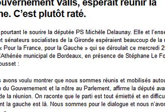 Il suffit de lire l’ensemble de l’article pour constater avec moi à quel point les actes contredisent les paroles. Au PS, tout débat est devenu impossible si l’on n’adhère pas d’emblée à la ligne Valls-Hollande, libérale autoritaire. Chaque personne qui a tenté de contrecarrer le bel entre-soi et l’exercice d’auto-satisfaction du porte-parolat du gouvernement a été expulsé manu militari de la salle… Et l’on voudrait que je sois confiant dans l’avenir de ce pays, et la vitalité de notre démocratie ? Appeler un chat un chat…