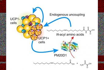 L’équipe dirigée par le Dr Bruce Spiegelman, directeur du département Métabolisme et maladies chroniques au Dana-Farber, professeur de biologie cellulaire et de médecine à Harvard et auteur principal de l’étude, a découvert le mécanisme de combustion de la graisse brune, et beige, chez la souris. Au cœur de ce processus, une enzyme, PM20D1, sécrétée par les cellules et qui déclenche la production de composés particuliers, des dérivés N-acylés d’acides aminés. Ces acides aminés boostent le processus métabolique au point d’entraîner une perte de poids :