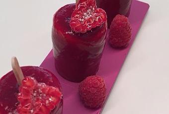 Les sucettes givrées Framboise-Citron vert et enrobage Gelée de Framboises