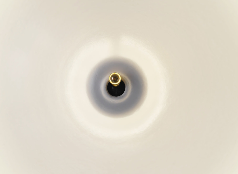 Une coupole de céramique d’un blanc immaculé ayant en son centre le dite interrupteur métallique, invitant l’utilisateur à l’actionner.