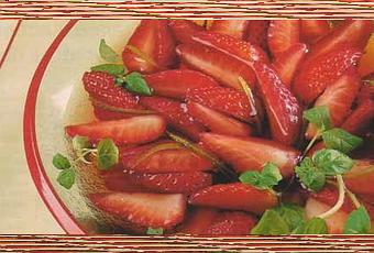 Lavez, équeutez et coupez les fraises. Mettez-les dans une coupe, décorez éventuellement de menthe ou de mélisse. versez le vin une fois filtré sur les fraises.