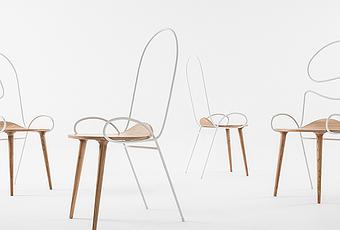 Atelier deshaus, studio chinois fondé à Shanghai en 2001, présente la gamme de chaise Sylph composée de 3 modèles principaux liant bois et acier.