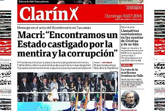Toutes les unes sauf celle de Página/12 qui se tient sur une réserve dédaigneuse et ne consacre au discours de Mauricio Macri qu'une petite manchette où il déforme les propos du chef de l'Etat : "Cher Roi, ces hommes [les députés qui ont voté l'indépendance] ont dû avoir quelque angoisse de se séparer de l'Espagne", alors que, je peux le dire pour l'avoir écouté in extenso, Macri parlait des hésitations (bel et bien historiques) (1) des constituants à l'heure de rendre le pays indépendant comme on peut avoir des craintes à s'assumer et à prendre la responsabilité de construire un pays sans plus pouvoir reporter la faute des éventuels échecs aux autres (claire allusion aux slogans kirchneristes, qui attribuent aux puissances impérialistes les difficultés de l'Argentine). La phrase de Macri ne s'adressait pas à l'Espagne et n'était nullement une remise en question de la décision prise il y a deux cents ans (mais alors vraiment pas !) mais une critique, certes très sévère et même cruelle, du complotisme permanent qui sous-tend le discours péroniste (notamment celui de Página/12) (2). Le reste de la une parle d'autre chose et profite de l'occasion pour faire un bilan ravageur de la politique économique du nouveau gouvernement, accusé de toutes les perversions politiques, mensonge, maquillage des données (avant, c'était l'opposition qui accusait l'INDEC de fournir des chiffres faussés), appropriation des décisions efficaces du gouvernement précédent. Bref, Página/12 fait aujourd'hui ce qu'il reprochait il y a sept mois à La Nación et à Clarín. C'est triste...