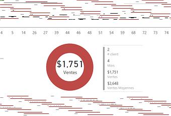 Le premier graphique consiste en un anneau rouge, jaune ou vert, selon son état, qui présente certaines données, ici des données de ventes, pour un client donné et un mois donné.