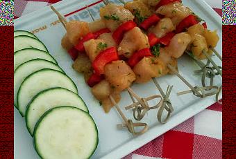 - Enfiler le poulet et les poivrons sur des piques à brochettes en les alternant.