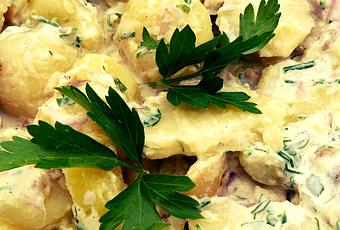salade, pomme de terre, vin blanc plat, mayonnaise, vinaigrette