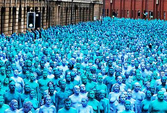 Près de 3200 personnes se sont dévêtues et ont peint leur corps en différents tons de bleu pour célébrer le lien entre la ville de Hull, en Angleterre, et la mer. L’œuvre, baptisée « Sea of Hull », a été réalisée par l’artiste new-yorkais Spencer Tunick. (