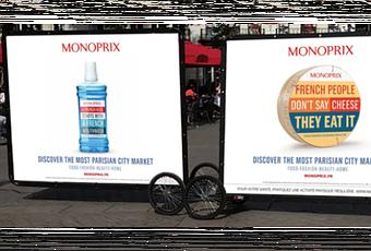 La campagne d’affichage sera diffusée tout l’été dans les lieux touristiques de la capitale grâce à des vélos publicitaires mais également des publicités dans des magazines dédiés aux touristes (Where Paris, Greater Paris, etc). Des flyers avec des promotions seront également distribués dans les hôtels pour que les vacanciers étrangers puissent découvrir Monoprix et ses produits.