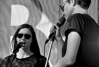 Commençons par MANSFIELD TYA, le deuxième groupe français de notre festival après Les Ogres de Barback la veille. Ces derniers mois à Paris, on n'a pas arrêté d'entendre parler de Mansfield, mais on n'avait pas encore eu l'occasion de les voir. Pourtant, cela fait des années que le duo existe. On profite de leur venue au Coeur du FEQ en ce beau dimanche après-midi. Julia et Carla s'installent tranquillement sur scène, présence apaisée, presque froide. Leur électro-folk hanté met son temps avant de nous secouer de l'intérieur, c'est progressif, il faut s'accrocher. Le duo alterne les ballades solaires à la Birkin, les titres rétro à la Daho (" Bleu Lagon ") et les chansons aux gros beats électro (" La fin des temps ", " Palais noir "). On adore ces séquences d'onomatopées vocales très rythmiques, mais surtout on adore ces constantes montées d'intensité, au clavier, au violon, à la guitare électrique... qui te prennent aux tripes.