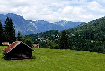 Wamberg est un des plus hauts villages d´Allemagne, il est situé à 996 mètres d´altitude. Une promenade facile que la plupart effectuent en prenant le téléphérique (Eckbauerbahn) pour redescendre ensuite vers Garmisch. Le téléphérique part du stade olympique (altitude 730 mètres) pour vous mener à courte distance du chalet de montagne, situé à 1236 mètres d´altitude.. Vues magnifiques sur le Wetterstein et le Karwendel. Le dénivelé total est de 500 mètres.