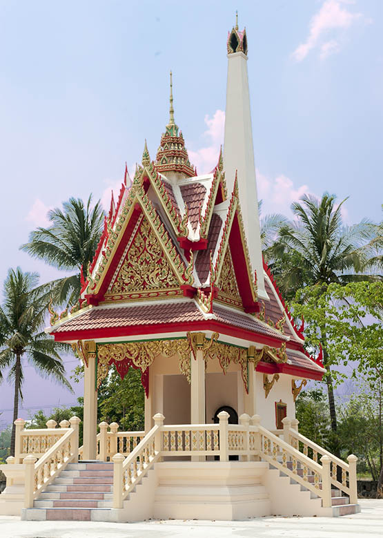 Quand quelqu'un est décédé, on célèbre le défunt pendant au moins trois jours. On met de la musique très fort et très traditionnelle. Je sais : le jeune fils bourré d’un voisin s’est pris un arbre en voiture et les ding-ding m’ont pris la tête nuit et jour avec une courte accalmie pendant presque une semaine. Quand ce n'était pas les ding-ding, c'était les moines qui psalmodiaient leurs prières dans le haut-parleur en 80 décibels.Le cadavre est toujours apporté à la maison, quel que soit le lieu de la mort. On l'allonge dans une boîte en bois. Il y a un mois, j’en ai vue une par hasard, posée sur un pick-up - une boîte très simple, pas du tout travaillée. Il y a sans doute plus riche. J'ai été surpris car elle était toute petite - évidemment, la taille du thaï...