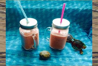 - Smoothie ananas, gingembre, pomme, orange et framboises : pour 2 grands verres : préparation 10 minutes