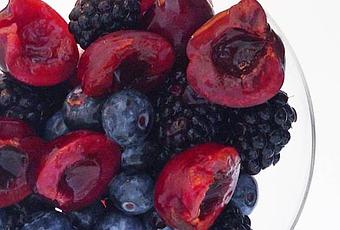Débordant de saveur, RESERVE™ est un supplément savoureux et pratique qui vous offre le soutien nécessaire à une bonne santé globale et une sensation de bien-être. Au goût délicieux de baies sucrées RESERVE est sucré naturellement et ne contient aucun sucre ajouté, saveur artificielle, colorant ou édulcorant. Ce que contient le RESERVE: de l'aloès, du thé verts, des cerises douces, des bleuets, du raisin de concorde, de la grenade et de la baie d'açai. Sans compter qu'il contient également du Réservatrol, qui contribue à la santé cardiovasculaire, pour aider à maintenir un bon système immunitaire, à combattre le stress oxydatif et favoriser une bonne santé oculaire. Alors je me suis inspirée des ingrédients du RESERVE afin de créer une salade de fruit riche en antioxydant. En plus c'est la saison des fruits frais comme le bleuet et les cerises.